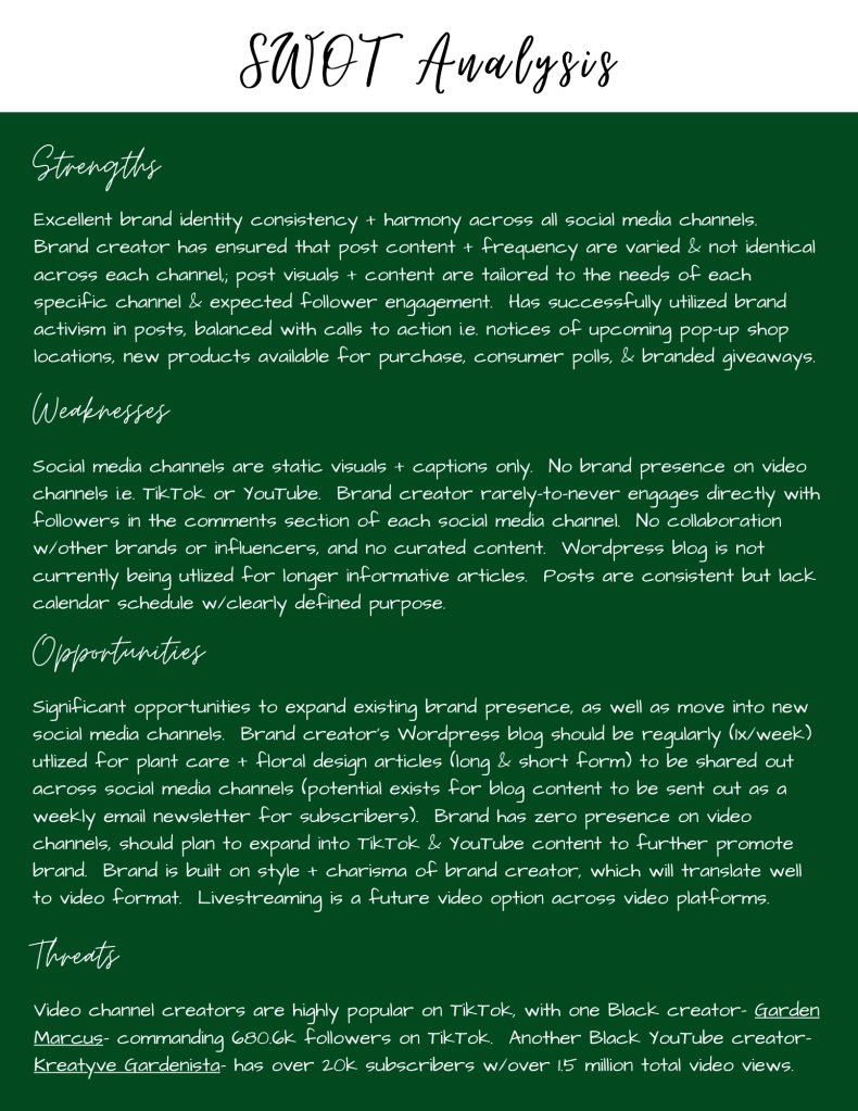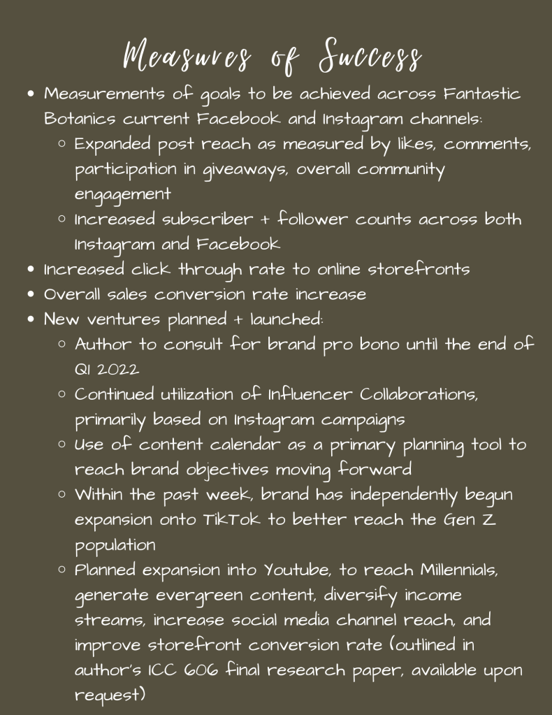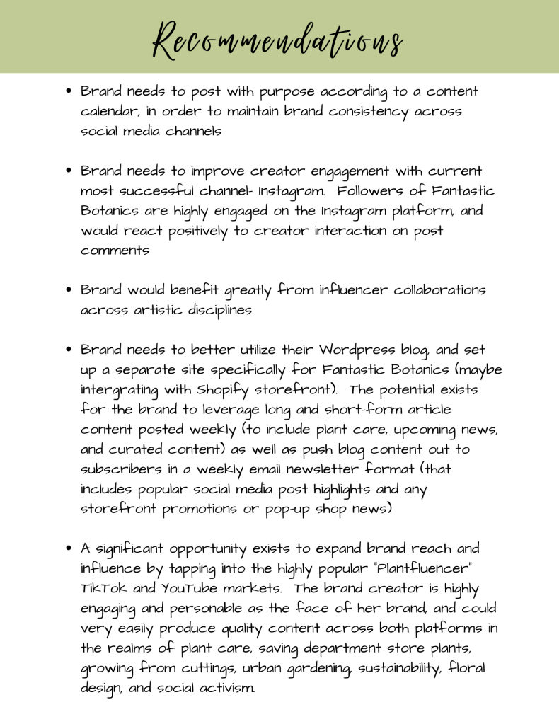 A secondary project involves a full social media audit of Fantastic Botanics to include the creation of an influencer collaboration campaign. You may download the social media audit by clicking on this link, and the associated pitch deck by clicking on this link.