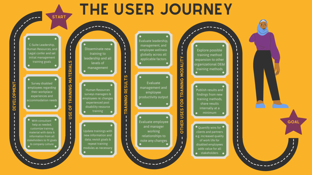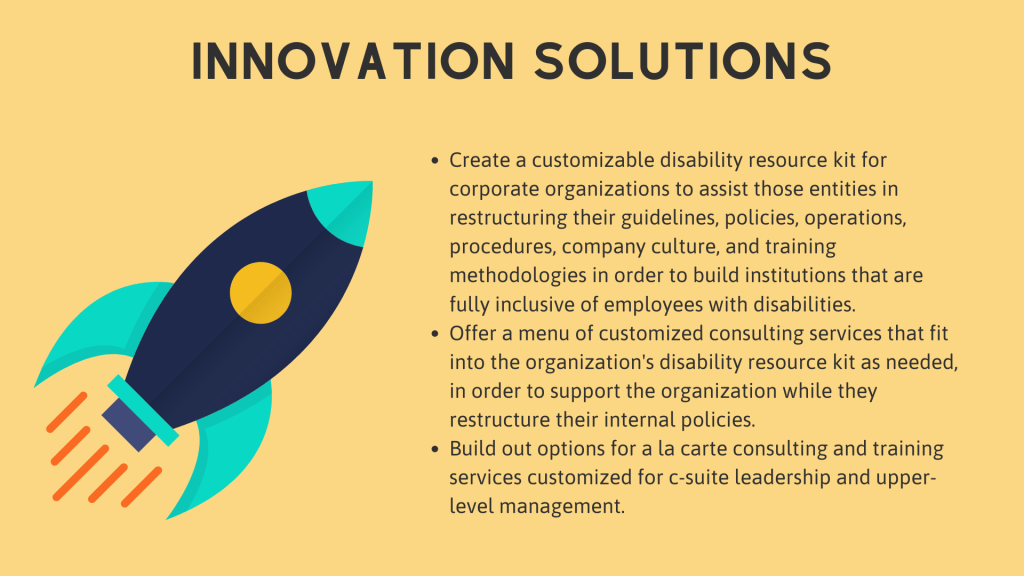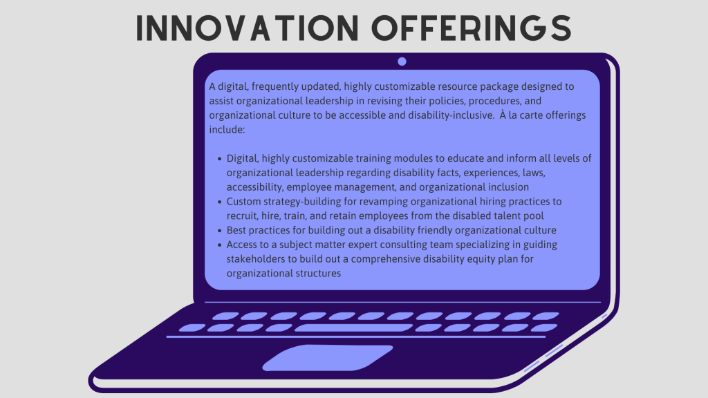 The following is the pitch deck for the capstone project of my Masters of Science in Communications, earned at Syracuse University in 2022. The goal of the capstone project was to produce an innovation in the field of communications management. As a disabled person and employee, creating and supporting disability access and understanding within corporate DE&I initiatives is a lifelong passion of mine.