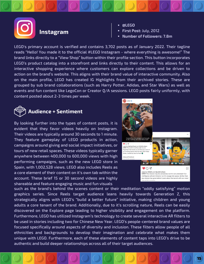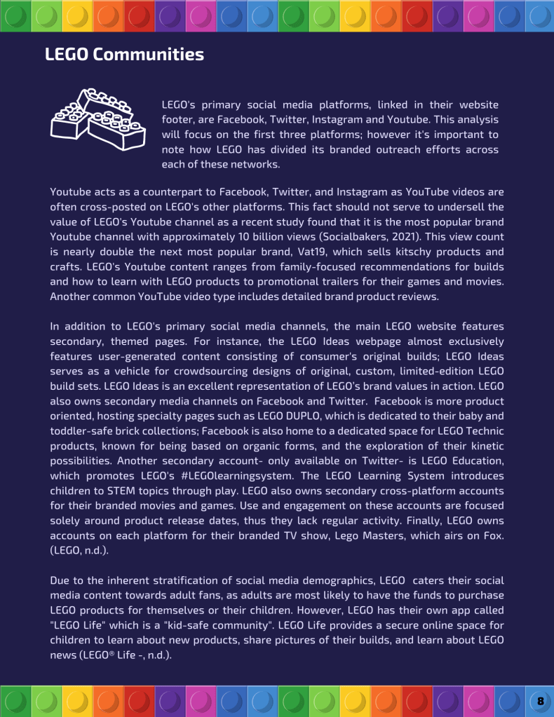Collaborative in-depth analysis of The LEGO Group’s brand identity and social media marketing strategy. You may download the document by clicking on this link.